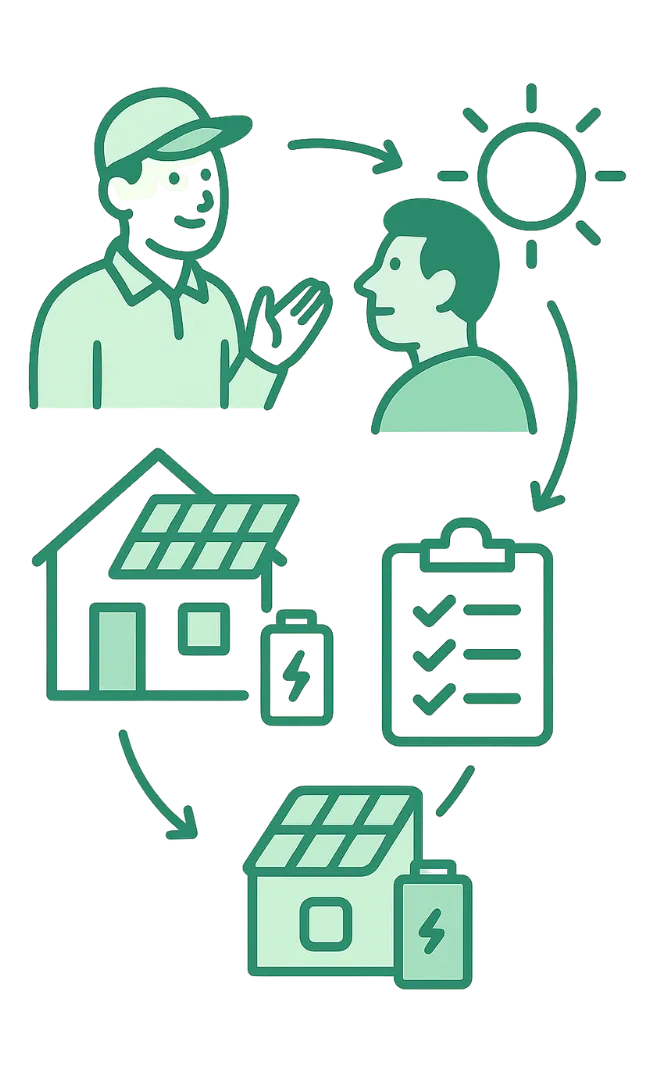 Onze erkende experts regelen alles voor jou: van de gratis energie-analyse tot de installatie van zonnepanelen en batterij, volledig zonder investering.